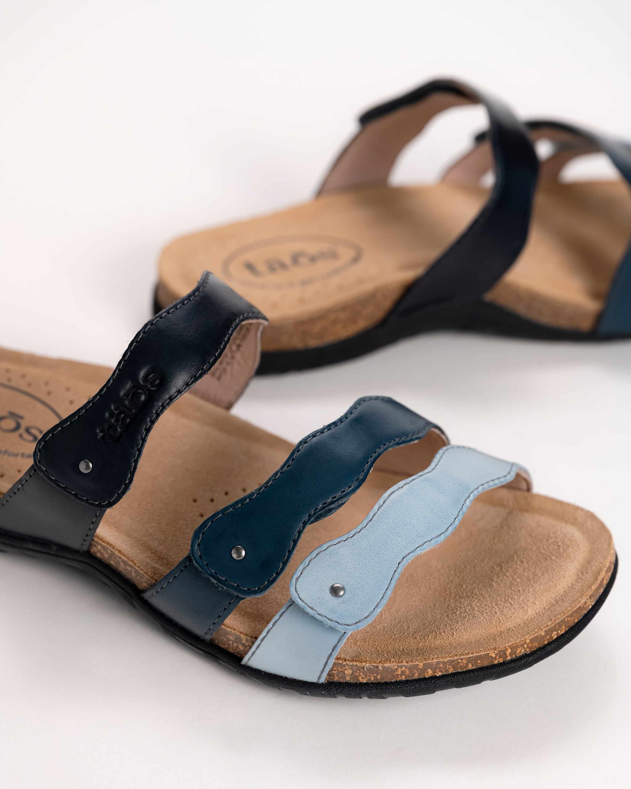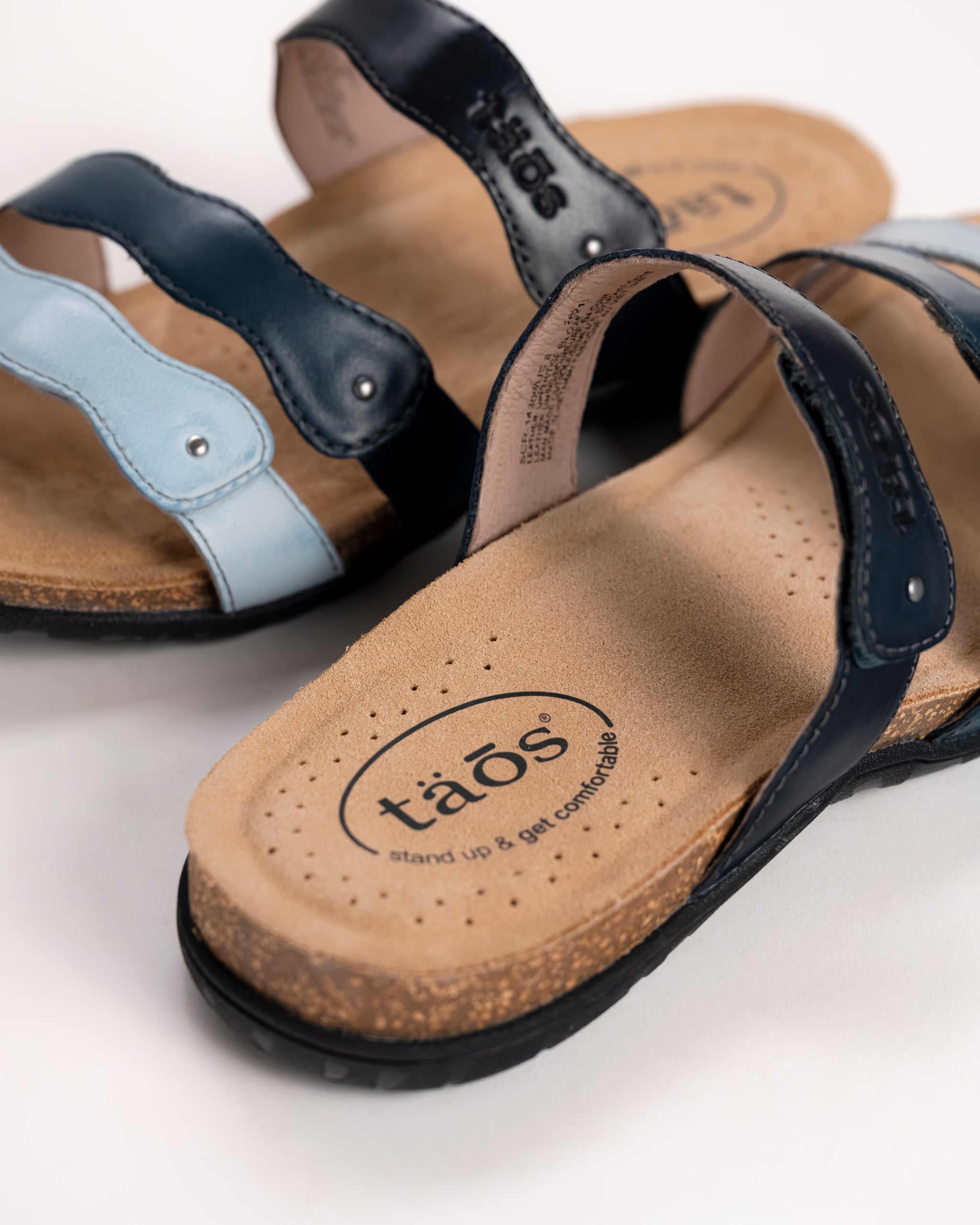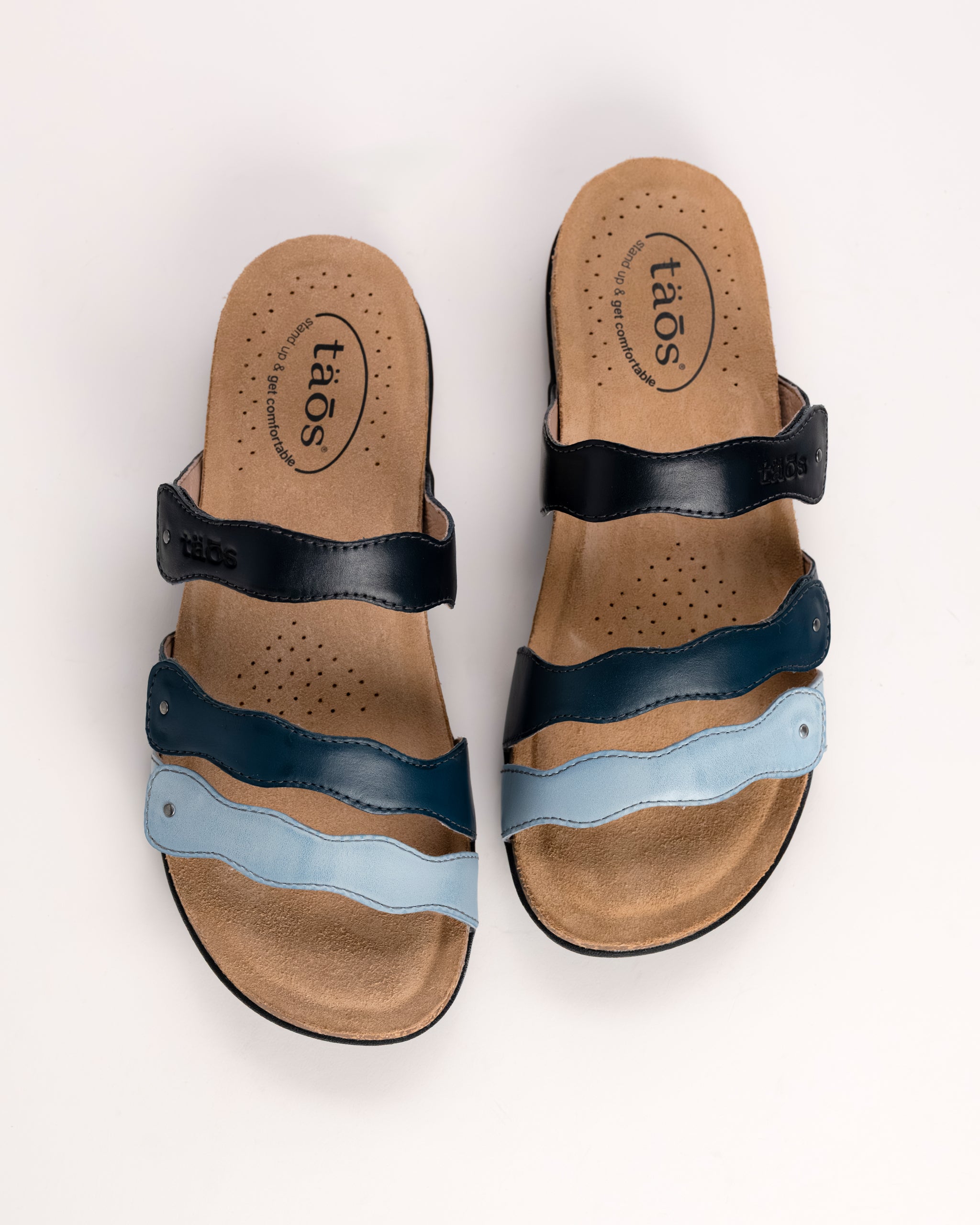 The Taos Scribble is a playful, comfort-focused sandal designed to stand out while supporting every step. Featuring three multicolor leather straps, this style adds personality to your everyday look while offering a fully adjustable fit that adapts to your foot.