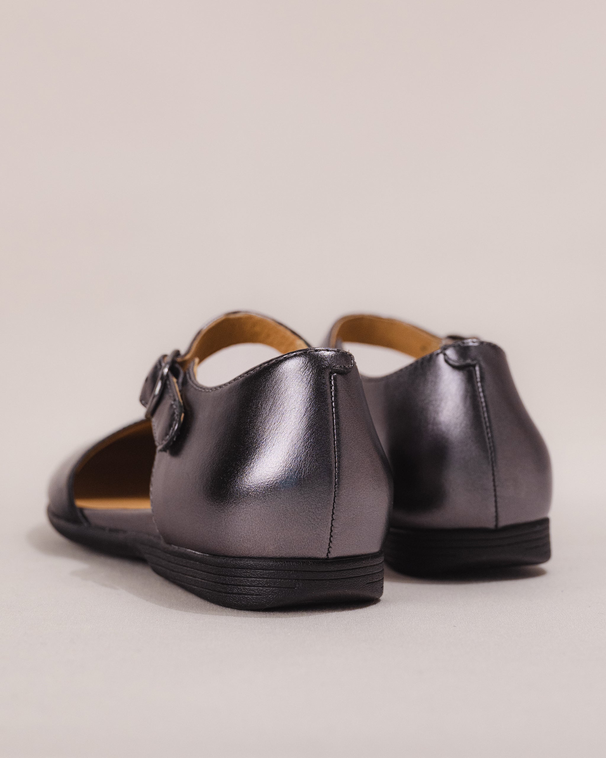 Supple leather upper with pewter metallic detailing