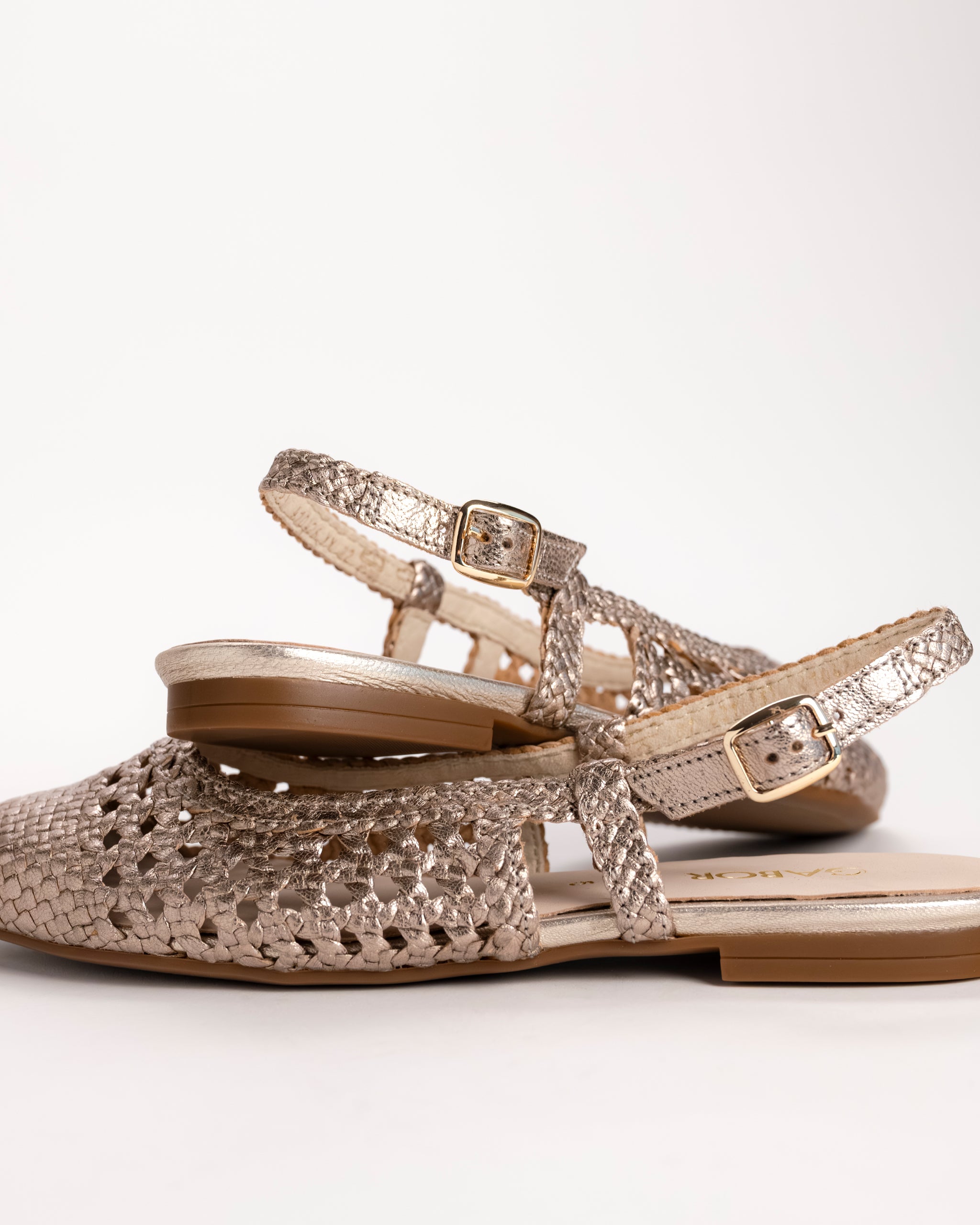 The Gabor pointed slingback flat is a polished, wear-anywhere shoe designed for days when you want to look put together without committing to a heel. Finished in a gold leather with an elevated effect, this pointed-toe slingback adds just the right amount of shine to everyday outfits and special plans alike.