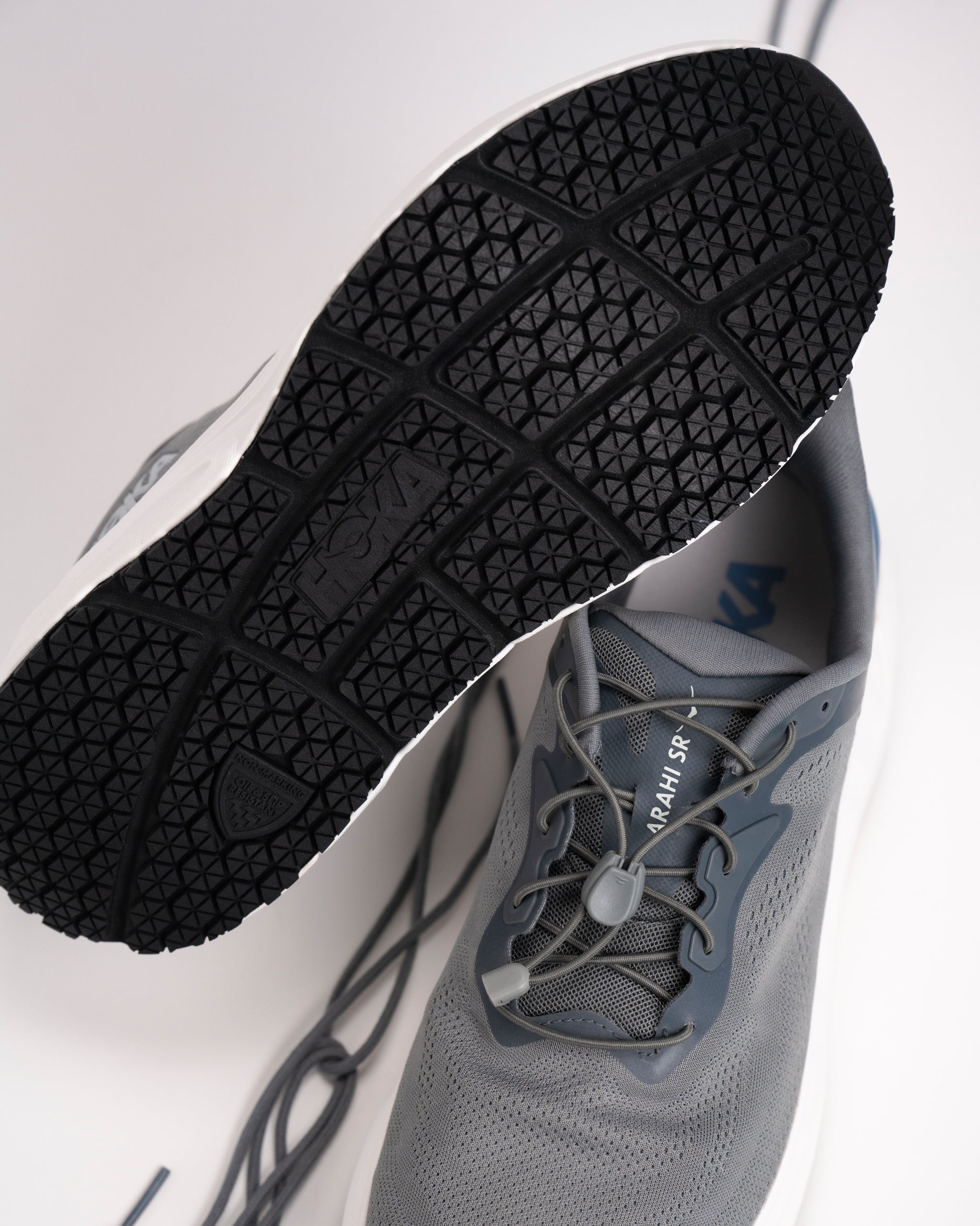 The HOKA Arahi SR blends slip-resistant traction with breathable comfort in a supportive, work-ready design. Built on the Arahi stability platform, this version features a full-coverage, extra-tacky non-marking rubber outsole designed to grip slick surfaces with confidence—making it a trusted option for healthcare, hospitality, and service professionals who spend long hours on their feet.
