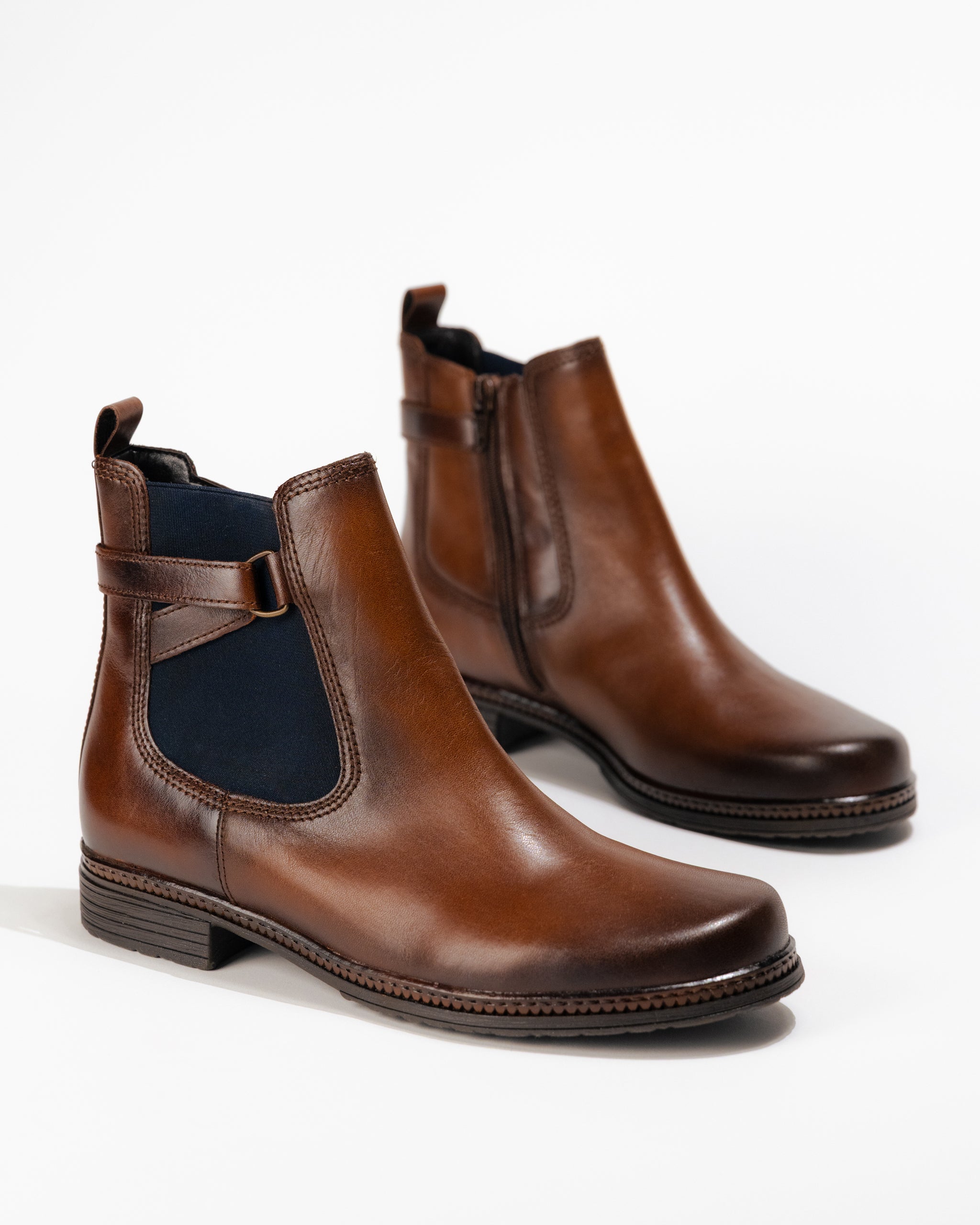 A polished take on the classic Chelsea boot, the Gabor 34.670 in saddle leather pairs timeless design with confident comfort. With its rich leather upper, clean lines, easy-on side zipper, this boot adapts effortlessly to outings, weekdays, and weekend transitions.