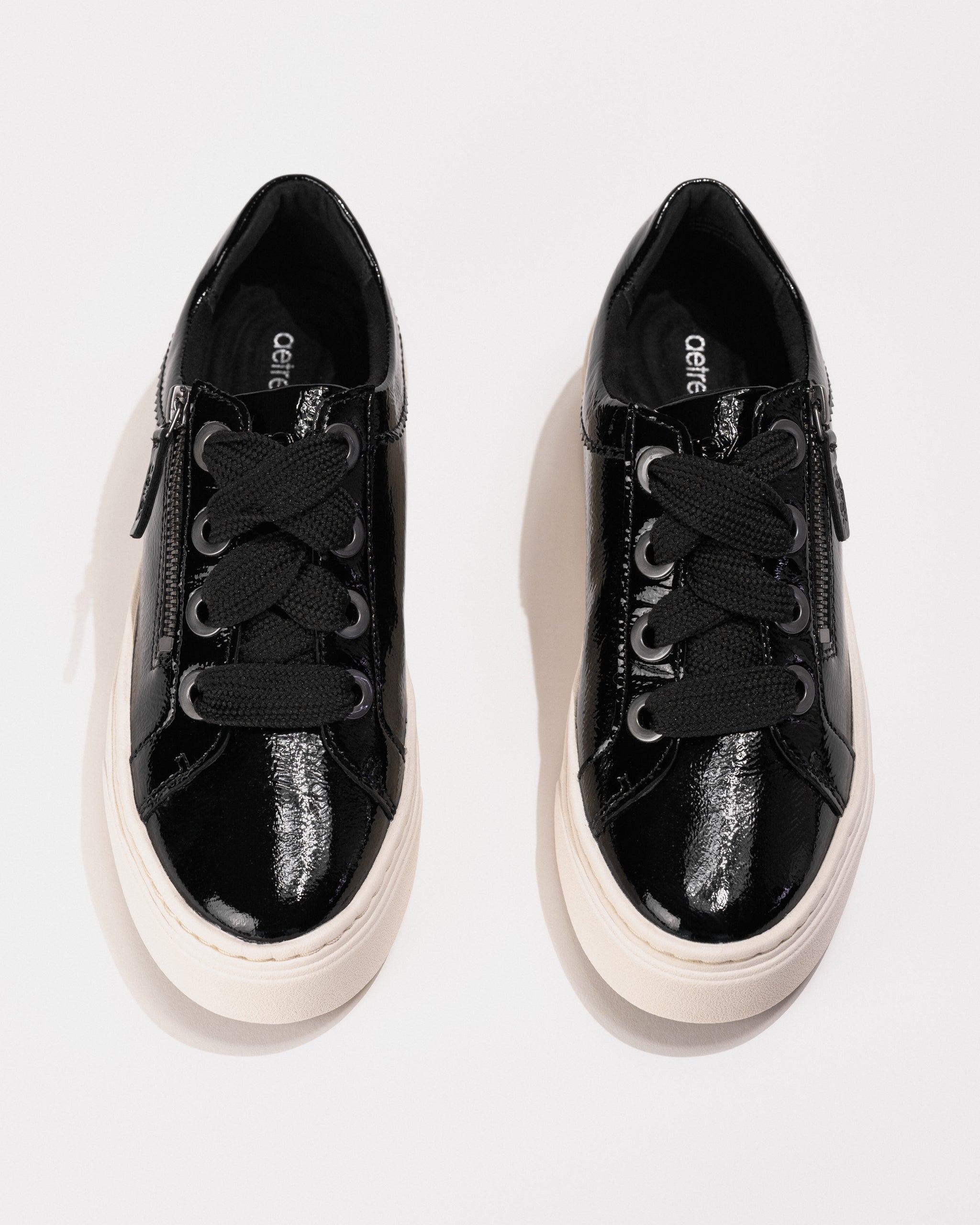 Modern polish meets podiatrist-approved comfort in the Aetrex Aubrey Platform Sneaker in Black Patent. Built for those who want style without sacrificing support, this fashion-forward sneaker is powered by Aetrex’s signature orthotic system with a high-cushion UltraSky™ midsole and anatomical arch support. Finished with a functional side zipper and padded heel collar, it’s a go-to choice for everything from casual errands to long travel days.