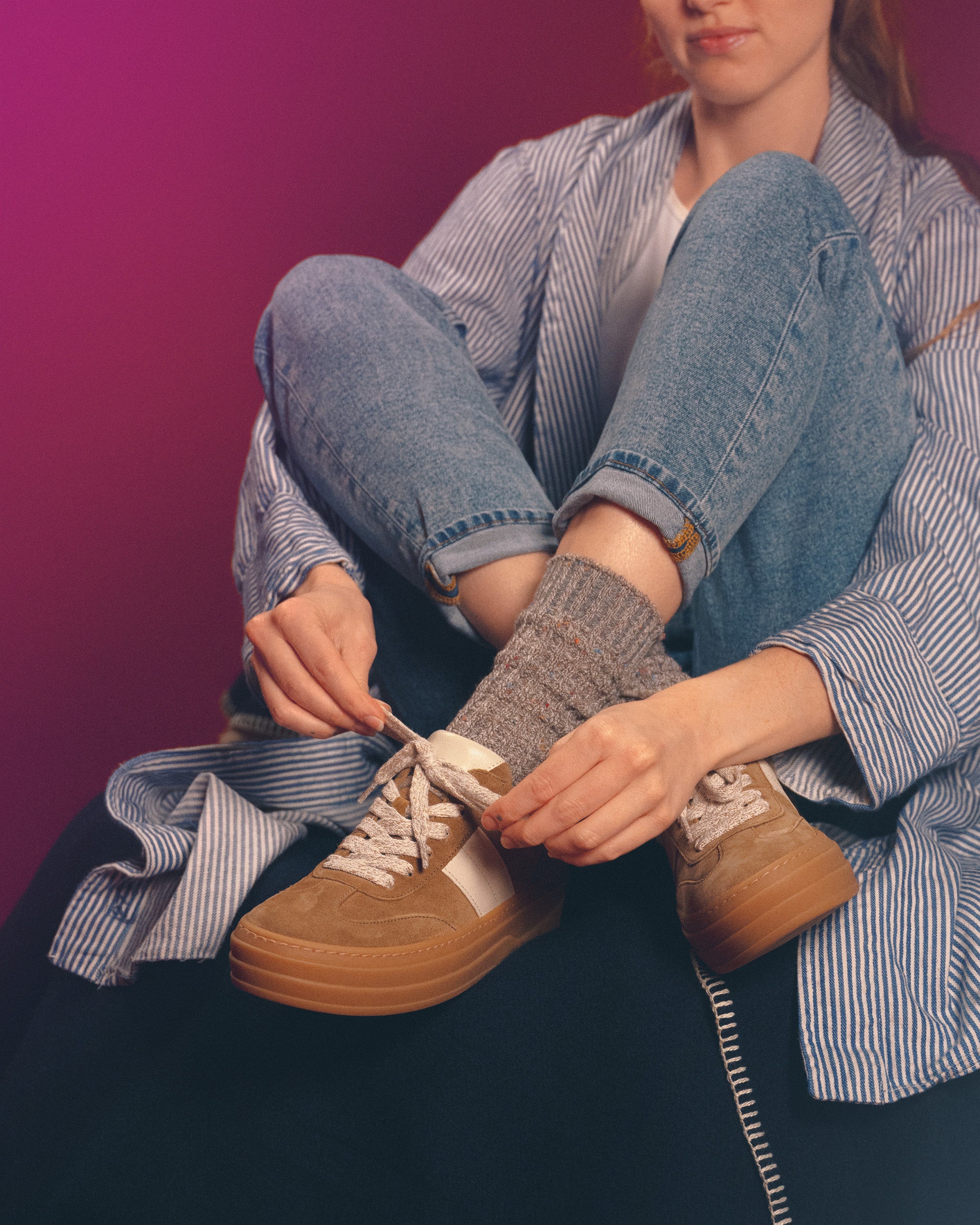 Where classic retro vibes meet cozy-chic comfort. The Gabor Chunky Platform Sneaker in Lion Suede (Style 73.350.13) brings neutral-toned luxury to your everyday wardrobe. Crafted in Europe with rich suede velour and soft synthetic wool accents, this fashion-forward sneaker is as comfortable as it is stylish.