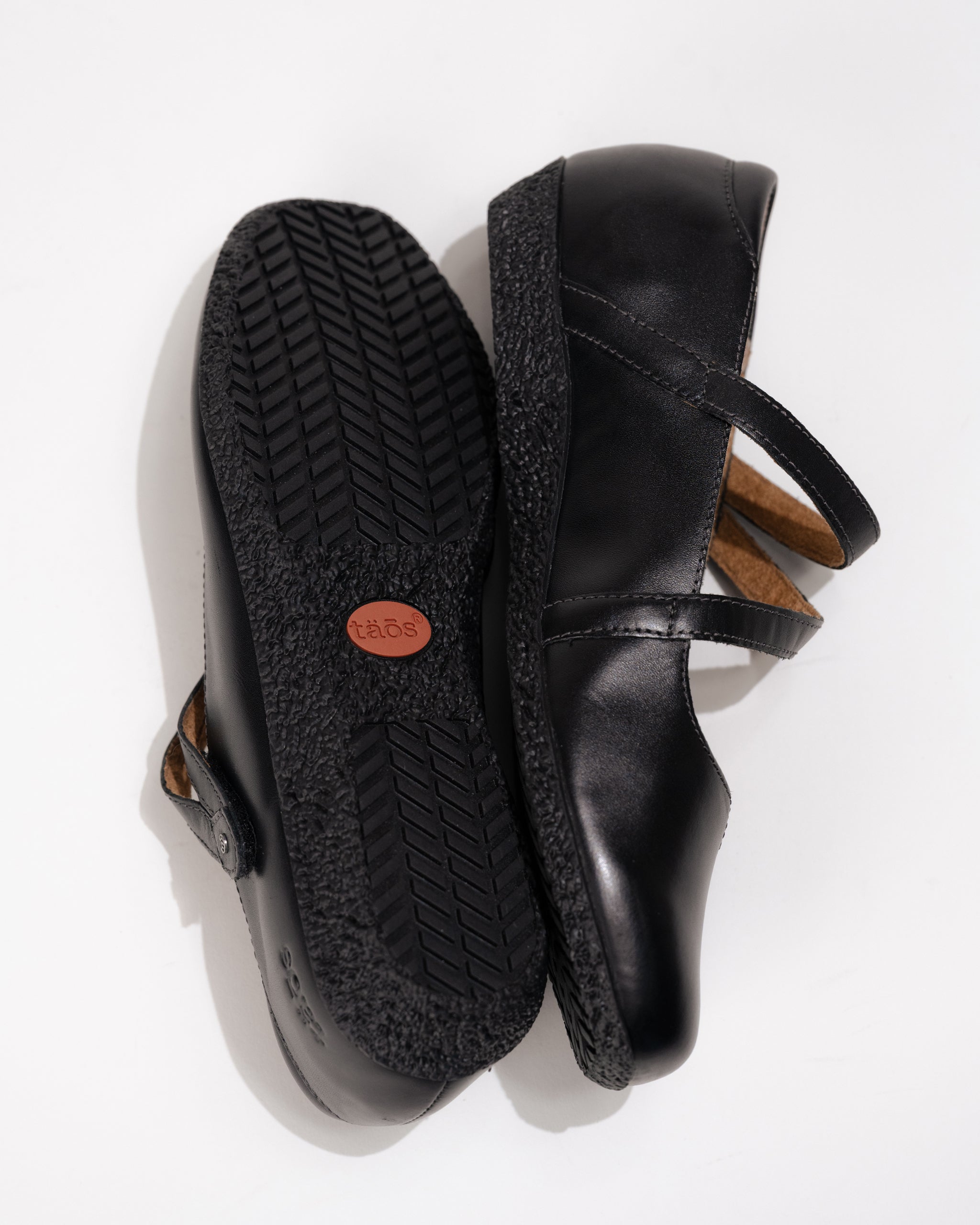 Women’s Taos Banter Flat – Luxe Black Leather Slide with Arch Support
